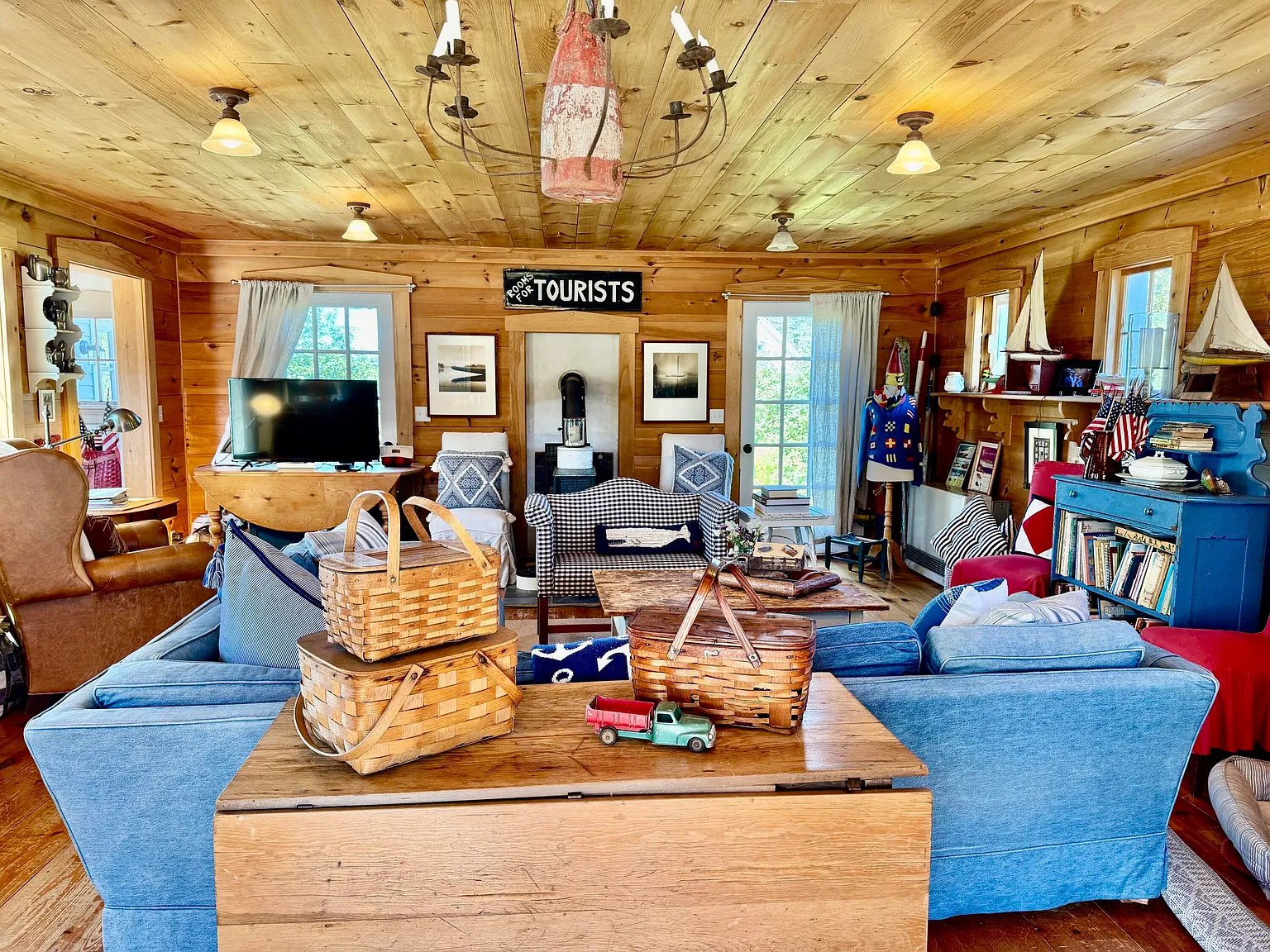 Sited on an unusually expansive 9.81-acre parcel, the home prioritizes historic function over modern ornamentation. The 1,693-square-foot interior is grounded by wood flooring and anchored by a functional wood stove. The layout features a practical first-floor bedroom and maintains the austere, purposeful spatial logic expected of a working 19th-century coastal home.