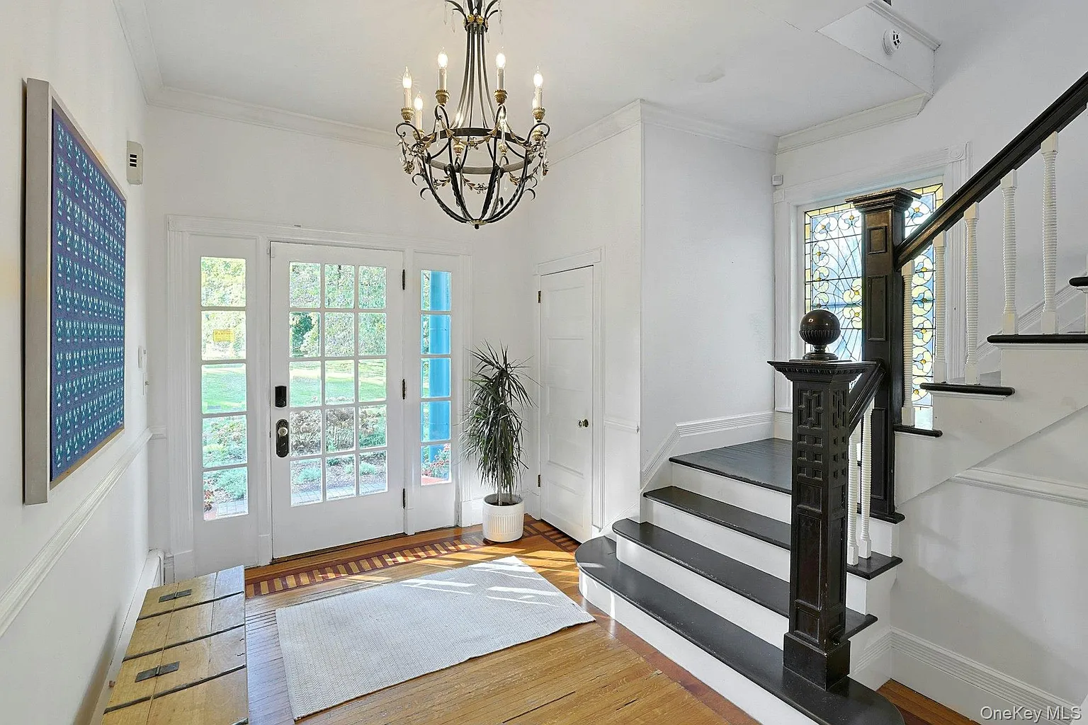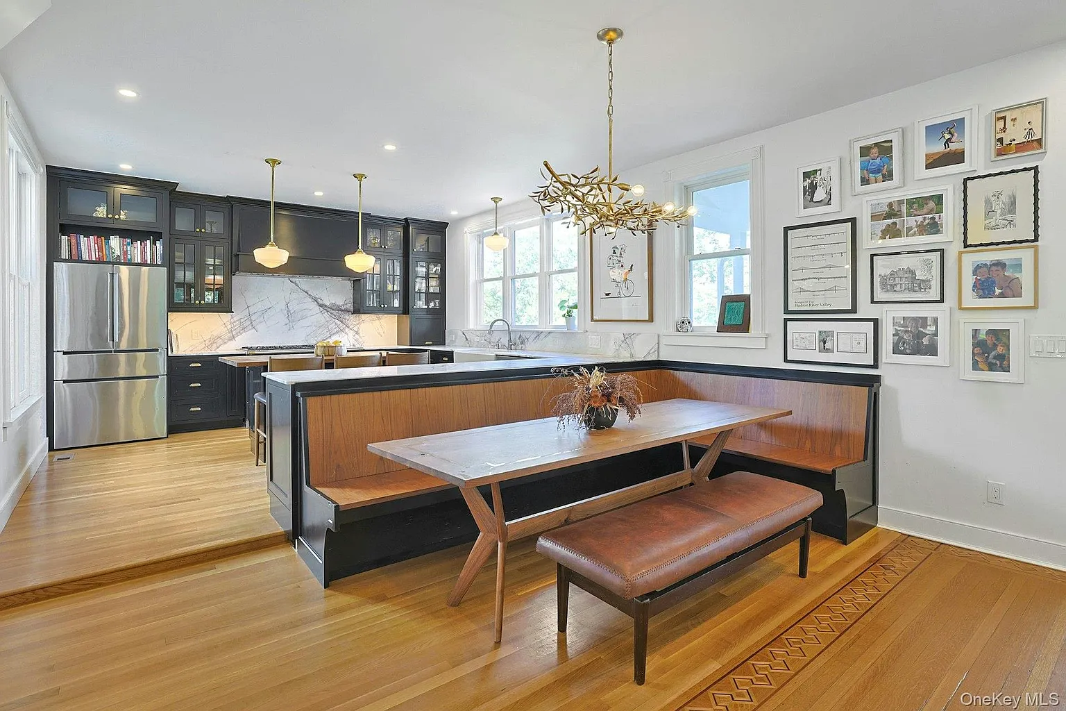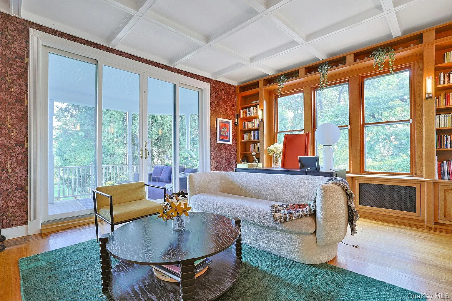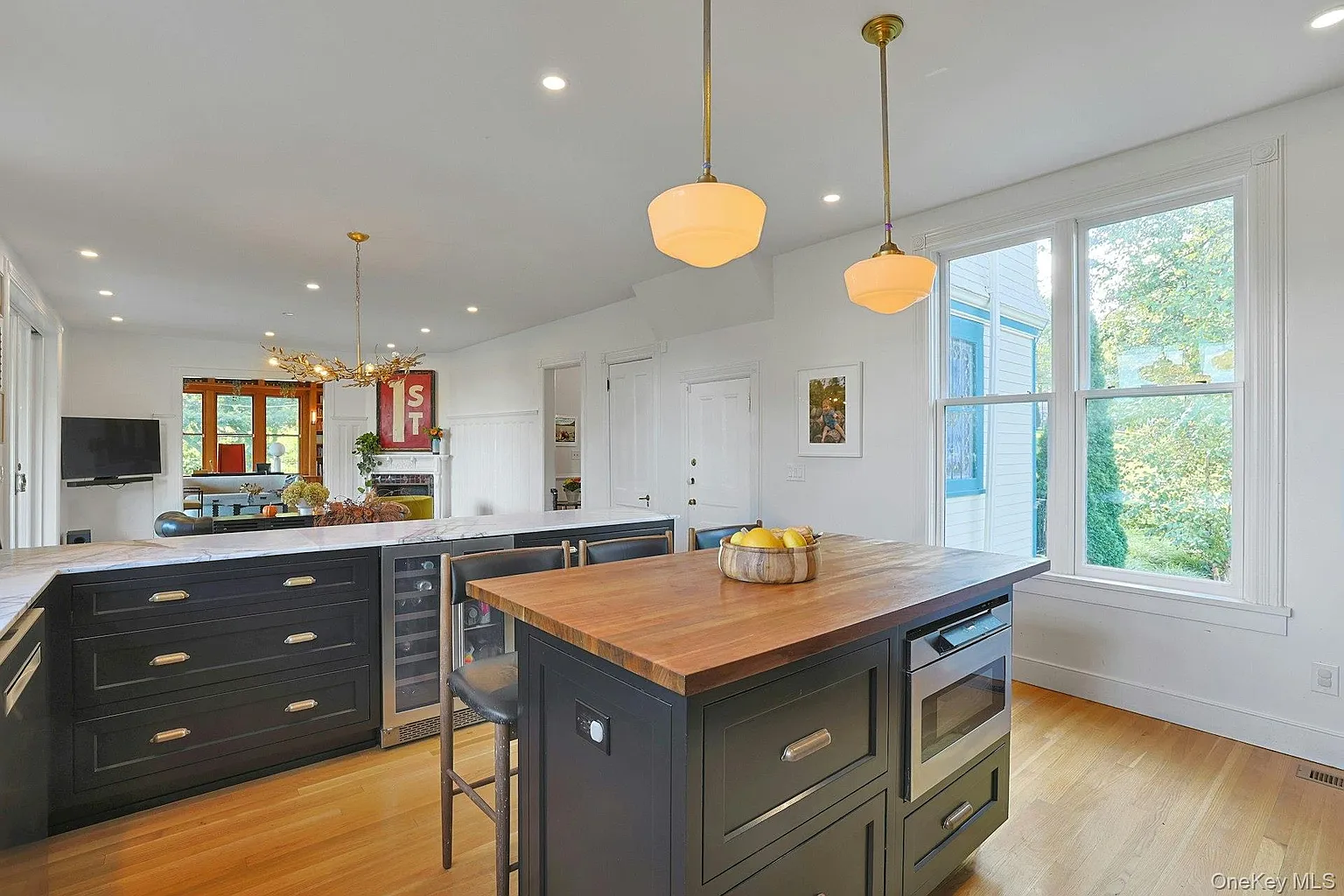 The interior showcases original stained glass, custom wood floors, and a true chef’s kitchen with Lilac Marble and a French LaCanche double oven. The singularly inviting library features custom oak bookshelves and a hidden speakeasy door!